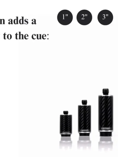 Sleek and functional 1″, 2″, 3″, 5″, 6″, and 8″ extensions for JFlowers cues. Just a couple of twists to get it on or off.