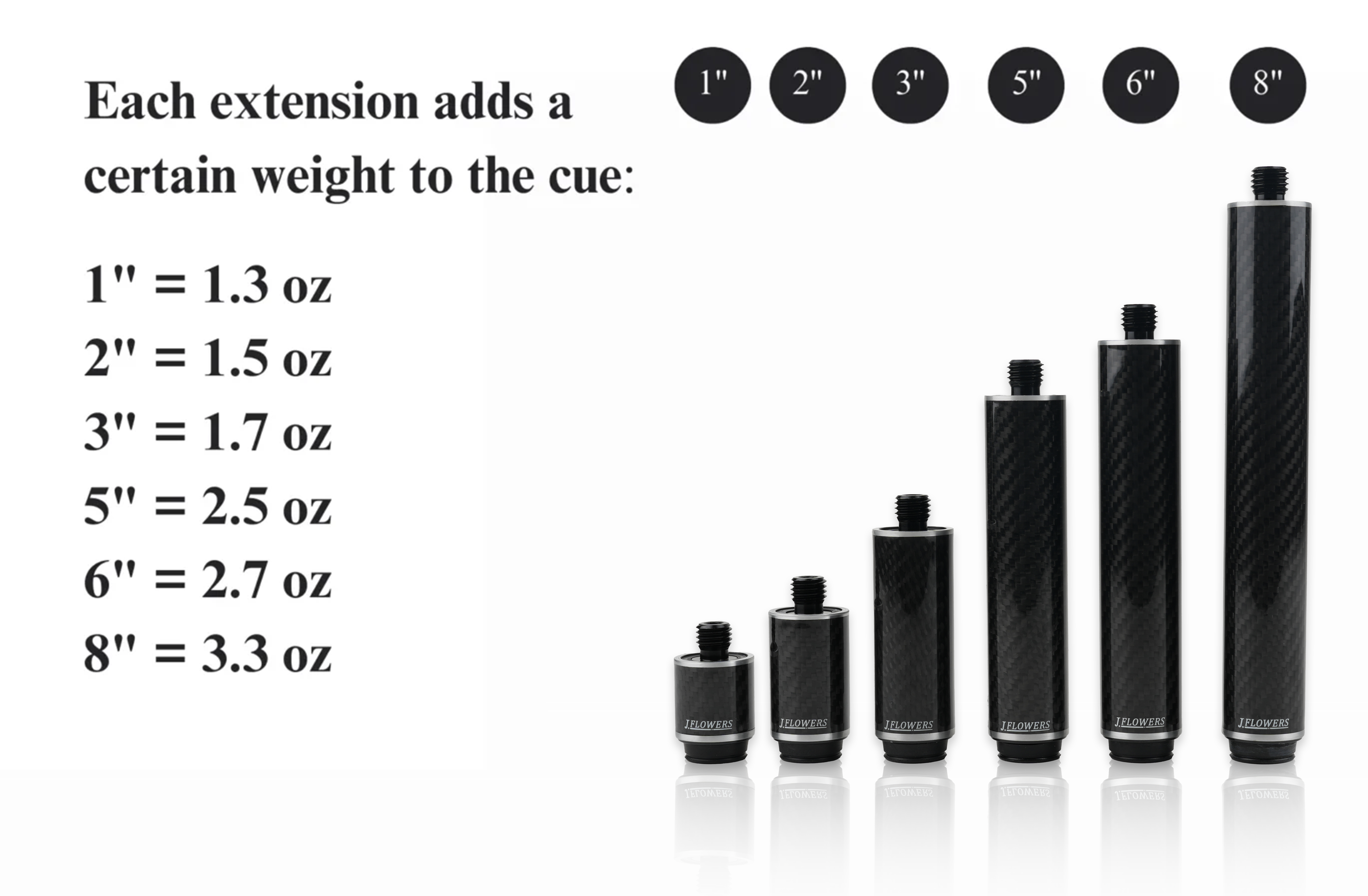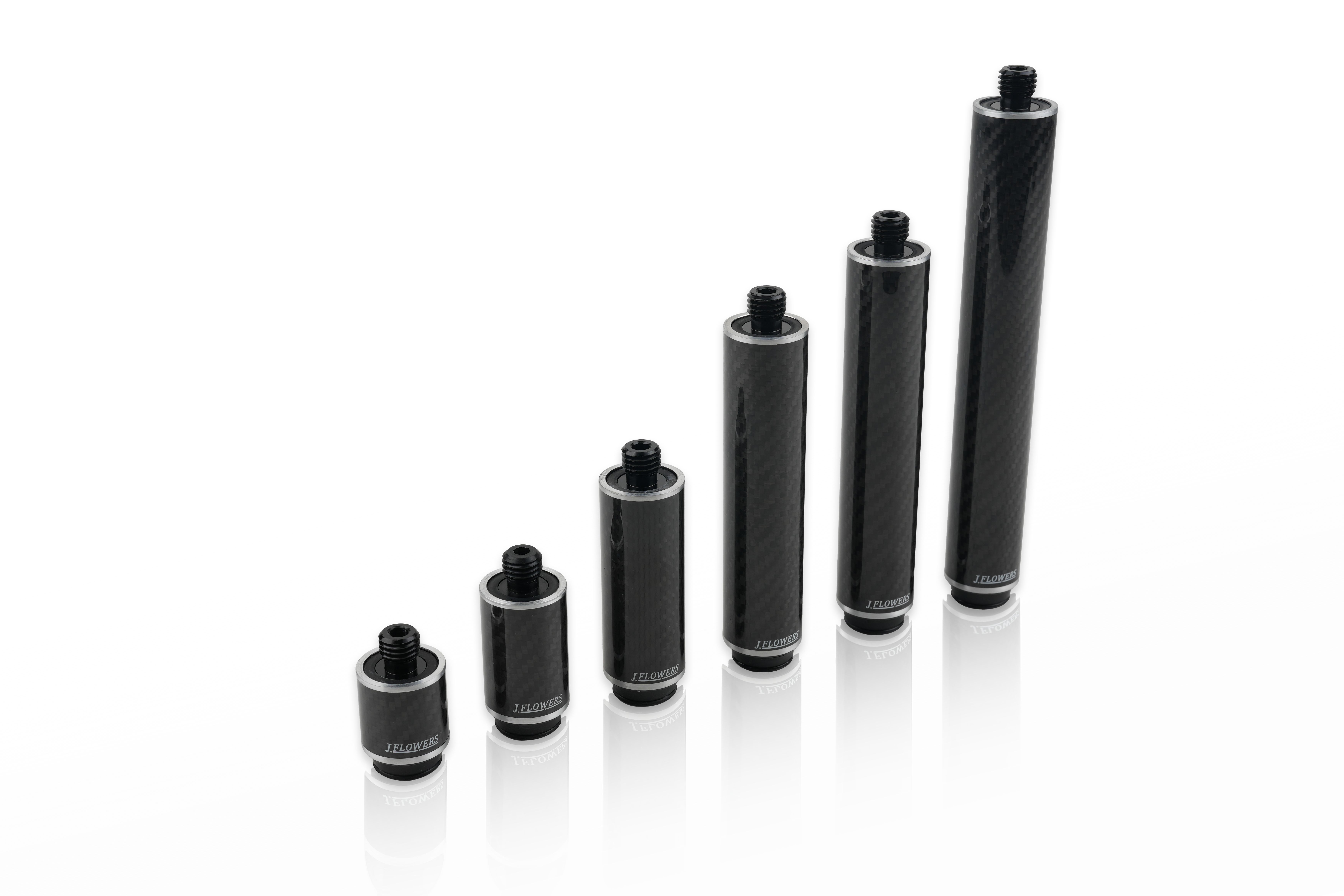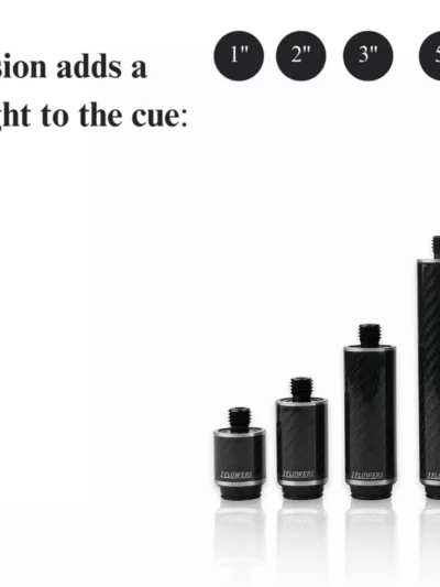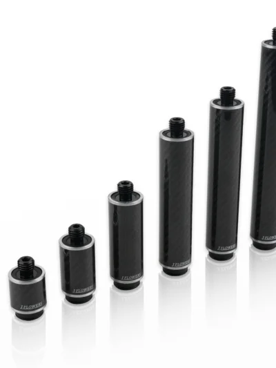 Sleek and functional 1″, 2″, 3″, 5″, 6″, and 8″ extensions for JFlowers cues. Just a couple of twists to get it on or off.
