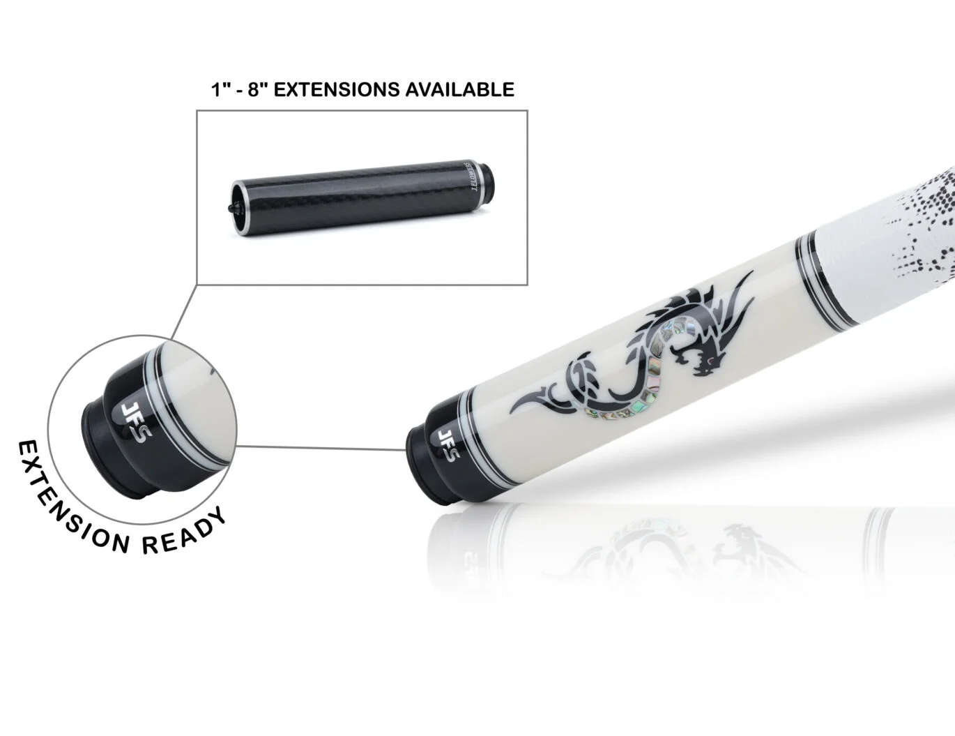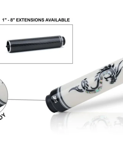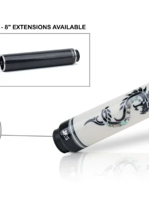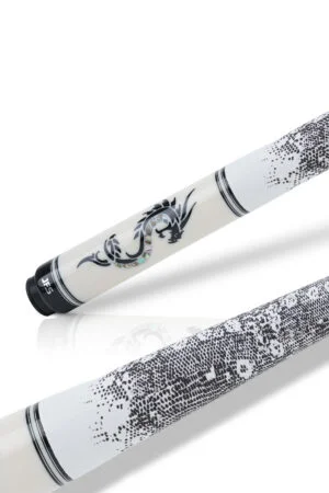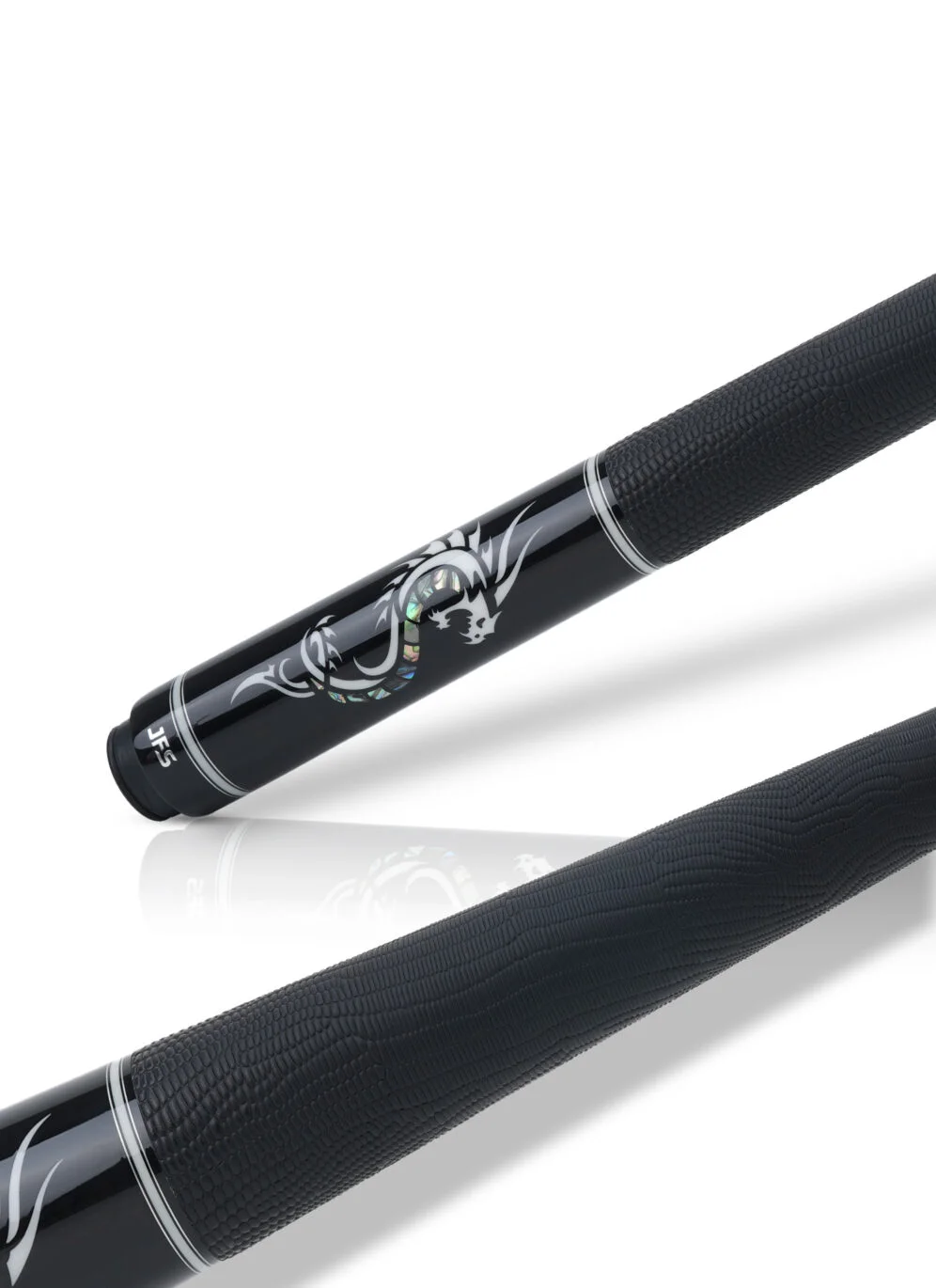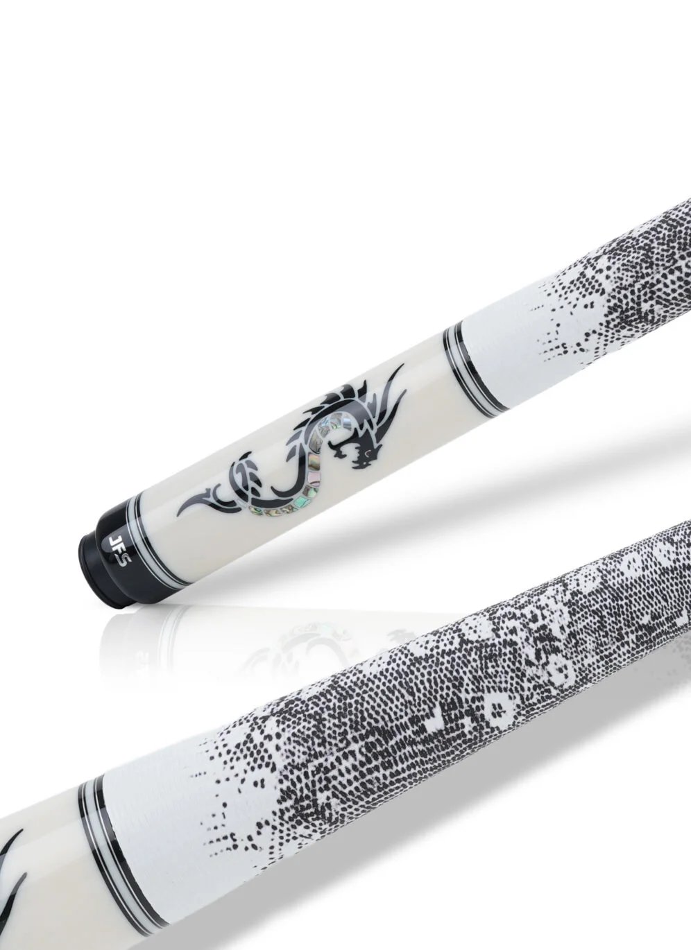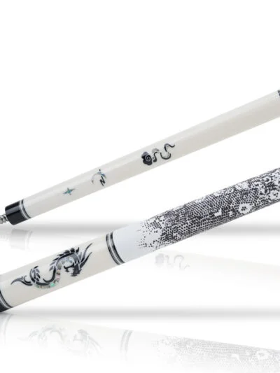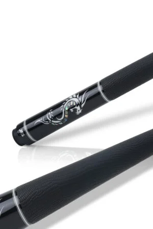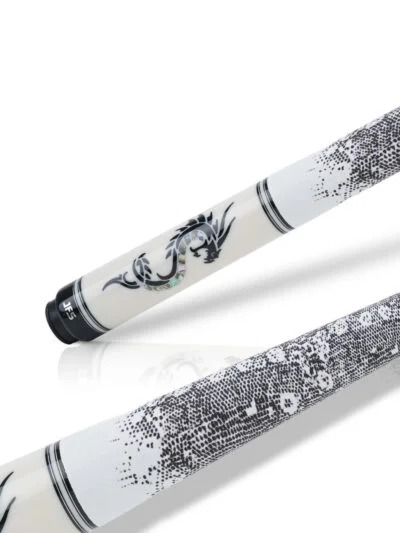 The 20-15 fuses mythic style with match-ready precision—dragon overlay art with abalone inlays, floral/star/moon forearm details, and a choice of black-on-black or white-on-white embossed-leather wraps.