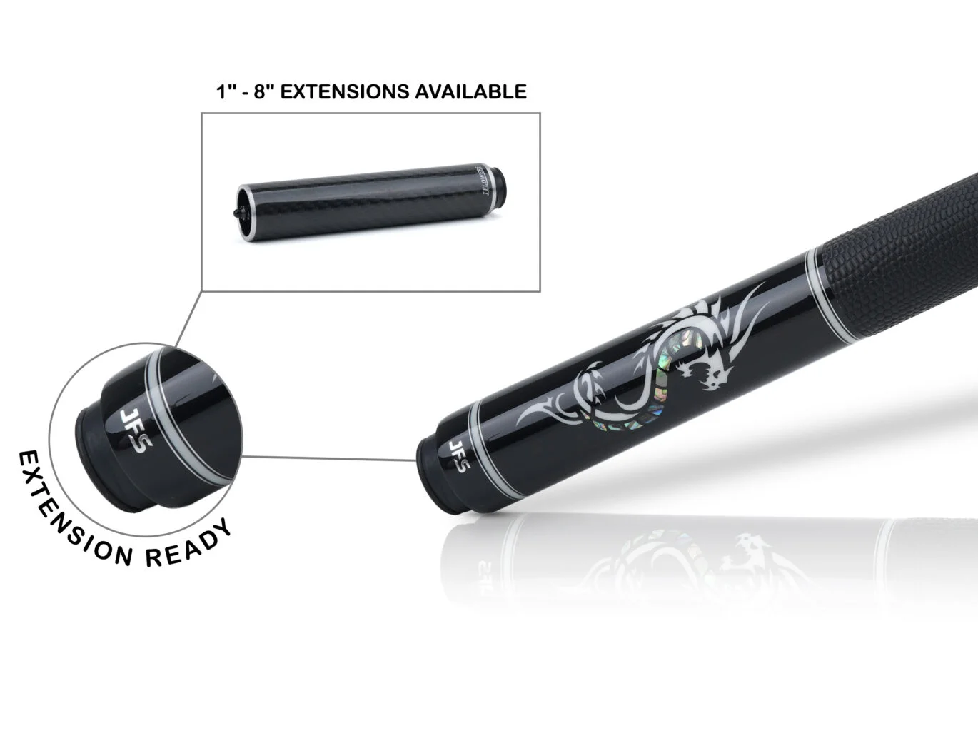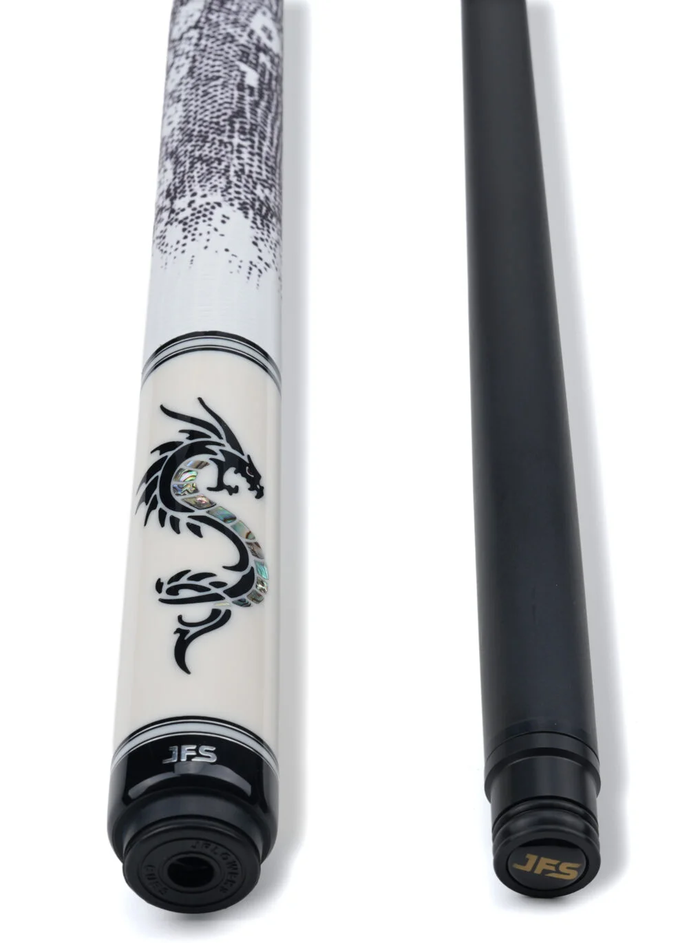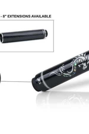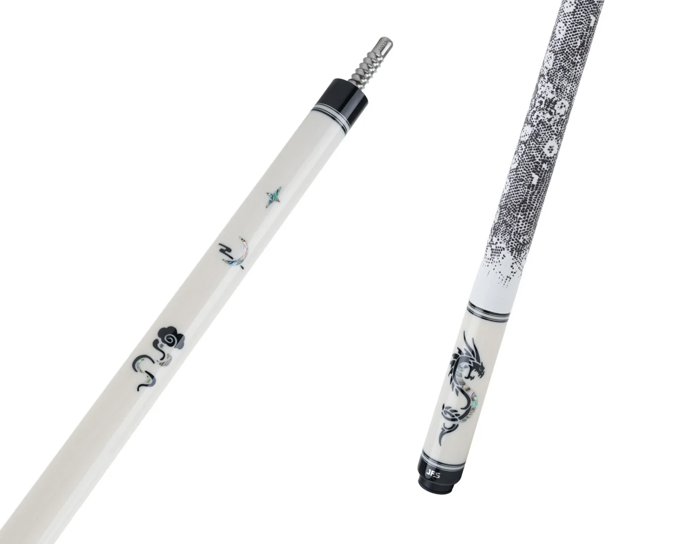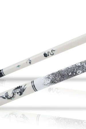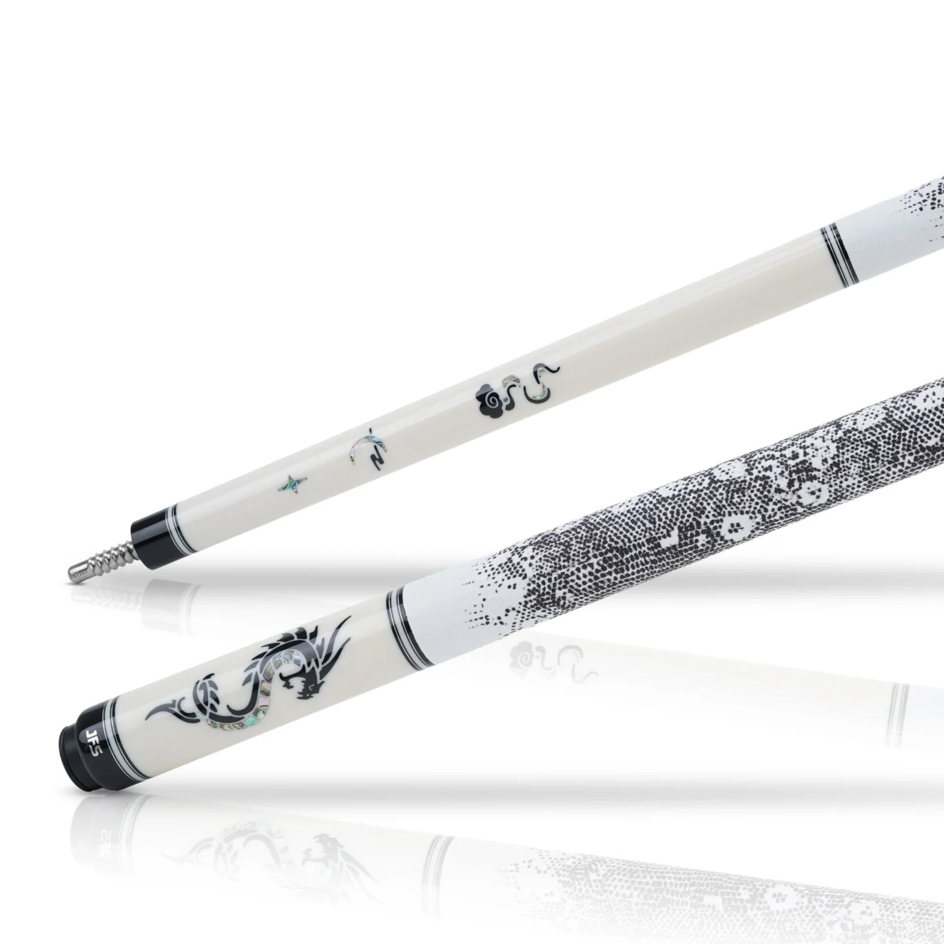 The 20-15 fuses mythic style with match-ready precision—dragon overlay art with abalone inlays, floral/star/moon forearm details, and a choice of black-on-black or white-on-white embossed-leather wraps.