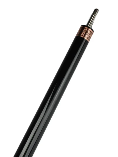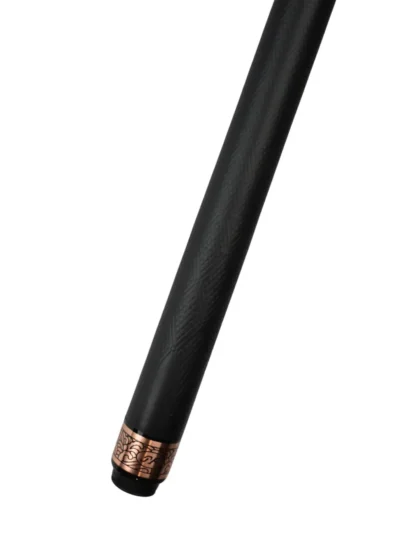 Black suit, brass accents. A black‑painted maple body dressed with wide brass ringwork, brass joint collar & butt cap, and a diamond‑pattern embossed leather wrap in black or rust red. Built on our Classic carbon‑fiber foundation—then you tailor diameter, weight, and upgrades to match your stroke.