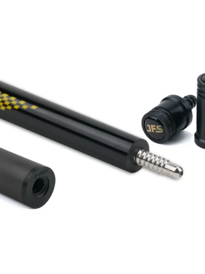 Pop the rack, keep the cue ball tame. JF‑BK2 adds an extended leather sport wrap for confident traction, a break‑tuned 13 mm shaft, and a phenolic tip for that crisp, no‑nonsense hit—set on purpleheart with bold JF‑Force yellow accents.