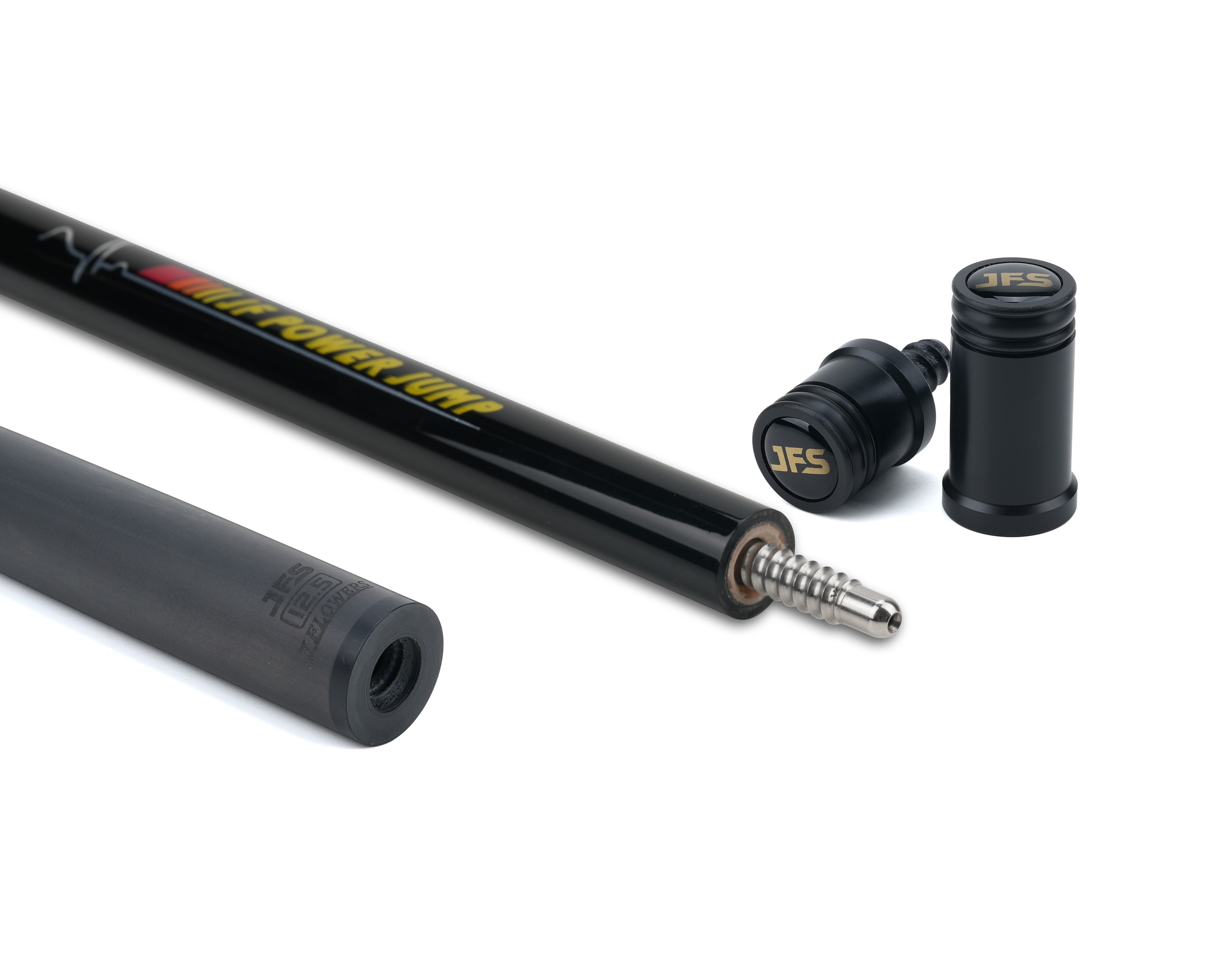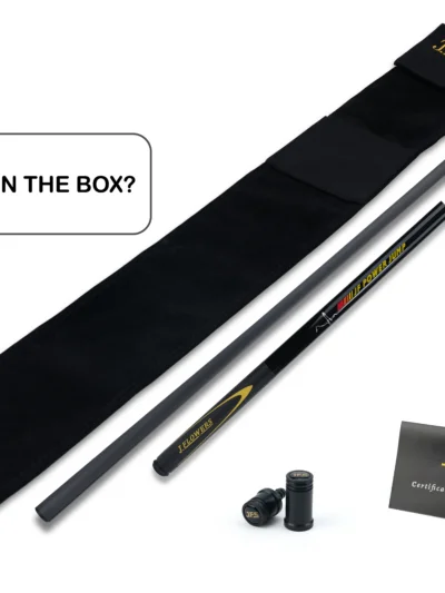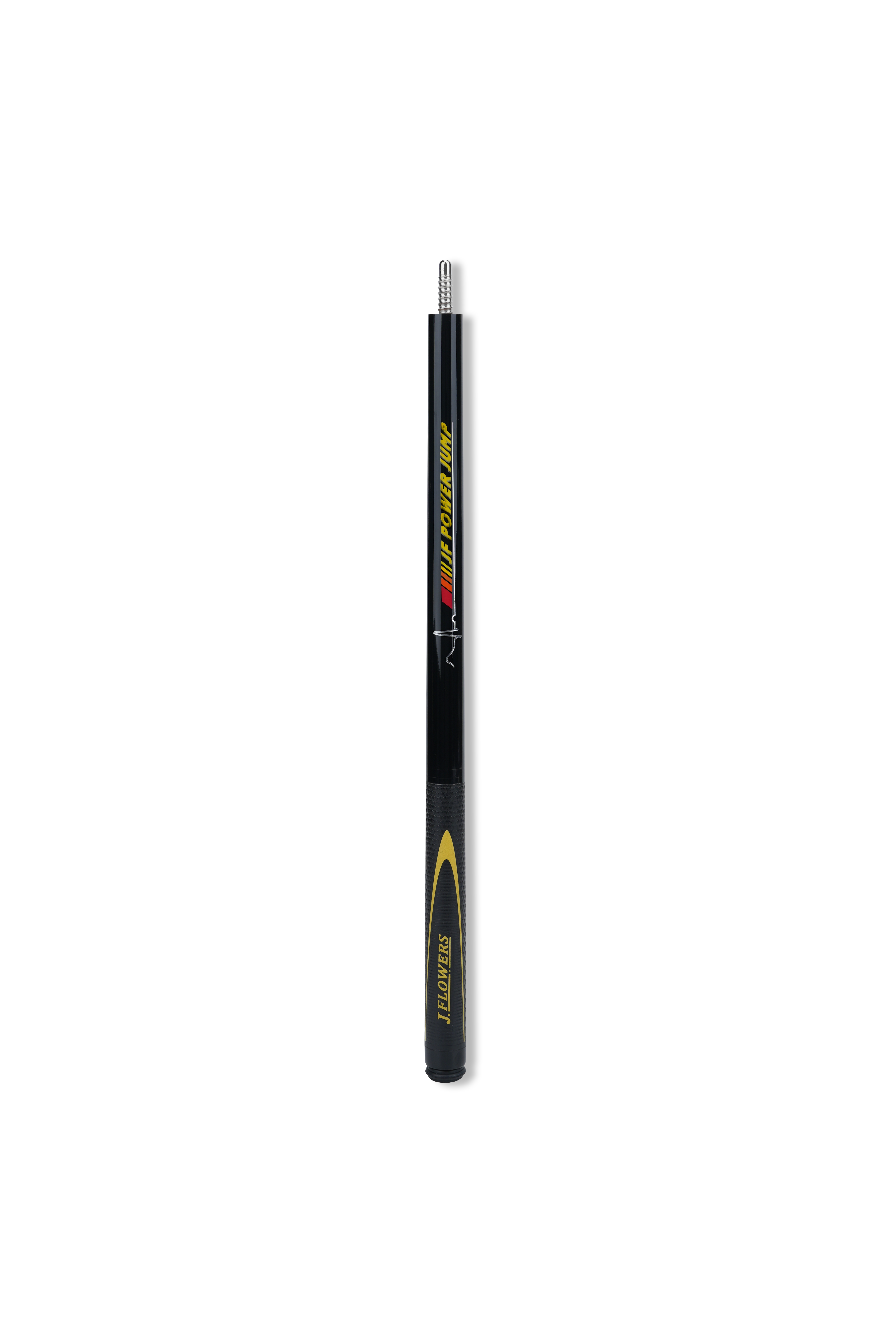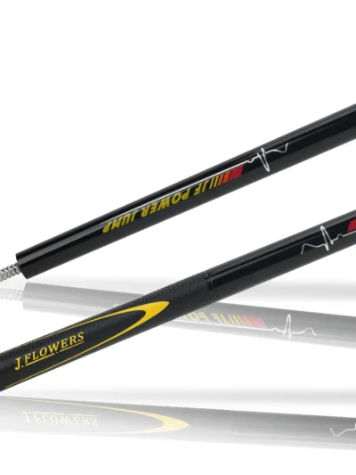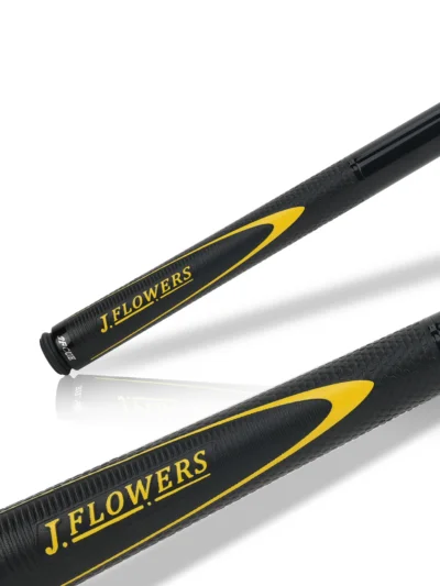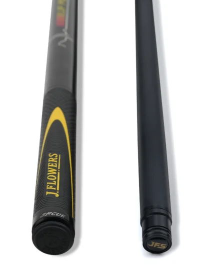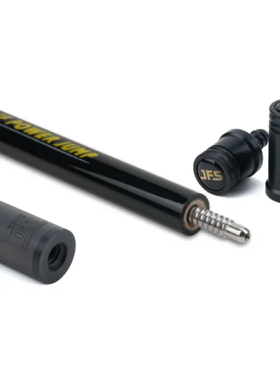 Pop it up, park it close. JF‑JP2 is a light, purpose‑built jump cue with a ≈13.8 mm phenolic contact, a stiff, jump‑tuned carbon platform, and an ash butt wearing a bold yellow JF Power Jump motif and extended leather sport wrap for secure acceleration. Quick worldwide shipping. Order now.