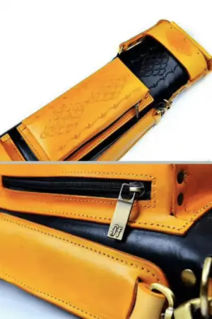 Stunningly beautiful 2×4 genuine leather cue case. Top-quality, durable, and with several pockets. It comes with an adjustable shoulder strap. Available in multiple colors.