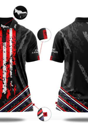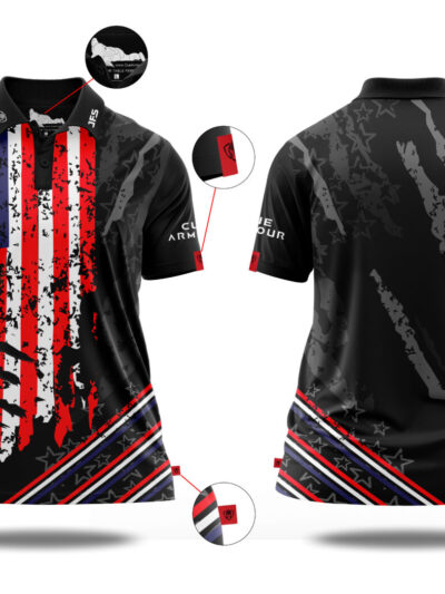 Presenting our lady’s Patriot USA jersey with a classic collar, the premier selection for top-tier pool and cue sports apparel. Meticulously crafted from an ultra-lightweight premium performance blend, it is engineered to maintain its integrity wash after wash while offering superior breathability, unmatched stretch, and vibrant color retention. The jersey has a women’s cut ensuring a perfect fit for female athletes.
